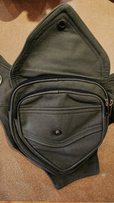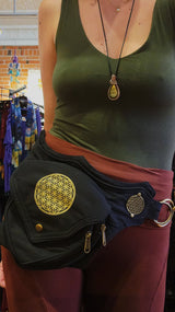 This cloth pocket belt has one compartment with two zippered pockets inside and one secret zippered pocket on the back. It also features gold hardware, a flower of life pattern on the front and side, and an adjustable waist to ensure the perfect fit!