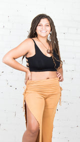 Umba's Strappy Bra is a must-need basic for your wardrobe. It can be worn on its own or layered with a cardigan for a great summer look. The back features strappy, breathable cut outs, perfect for a hot summer festival or packed concert. Pair with same color Umba Fringe Shorts for a onsie look. Also a great option for yoga, performance or dancing the night away.