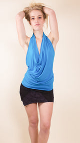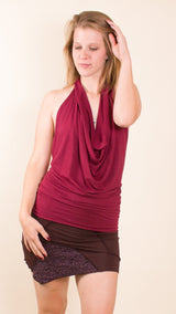 The Umba Open Back Cowl tank is the definition of hippie-chic and sewn as one piece, so no ties to fuss over. The hem hits at waist, and can be worn high or low- your choice. The velvety soft stretch accommodates a variety of sizes, and is made from our modal blend wrinkle-resistant fabric. Pair with the Bell Sleeve Shrug for colder evenings.