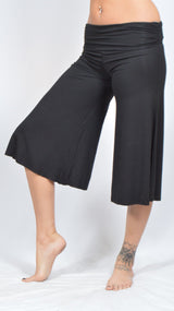 The Katook Capri is an Umba classic favorite. With a fold over waist band and flowing capri length these versatile pants have a comfortable form fit. Great for traveling, for everyday casual, yoga class or a festival, the rayon blend fabric stretches to form fit all body types, and doesn't wrinkle.