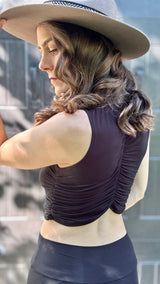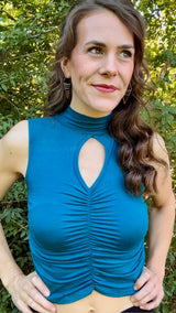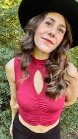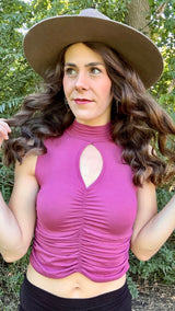 Turn heads without even trying. This keyhole crop top brings the heat with its ruched detailing and flirty peek-a-boo neckline. Designed with soft, stretchy fabric that hugs in all the right places, it features a mock neck, sleeveless cut, and a gathered detail that flatters your curves. Whether you're dressing it up or down, this top is made to stand out.