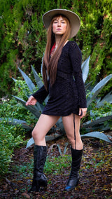 Fabric Features: Midnight Burnout Velvet. 90% Polyester, 10% spandex.