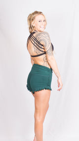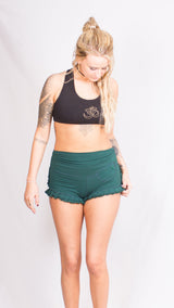 Playful, bold, and flattering — these ruffle-edge mini shorts are your go-to for movement and style. Designed with a high-rise waistband that smooths and supports, these shorts hug your curves comfortably while offering a confident, flexible fit. The flirty pleated ruffle trim adds a fun, feminine touch that stands out whether you’re dancing, practicing yoga, or enjoying a casual day out.