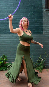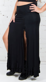 Umba's Double Slit Ruffle Maxi Skirt is the latest in classy festival fashion. With a high waist, and ruffles along the slits, this sexy skirt is hippie-chic at it's finest. Pair with any other Umba top or add leggings for a great winter look! Made from our comfy modal fabric, this skirt is wrinkle resistant and packs down great for travel.