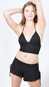 This adjustable halter top with stylish shoe-lace corset back, is one of Umba's most popular basics. With ties around neck and around the bottom of the rib cage, you get the perfect fit for your body. Comfortable and made from wrinkle-free fabric, this tops allows for freedom of movement. Also great for layering with a skirt or pants. Perfect for ecstatic dance, concerts, or a music festival.