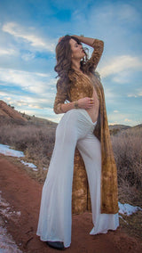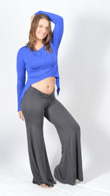 The Umba classic Long Knotted Gauchos are great for dancing, yoga, or relaxing around the house. Be sure to get your groove on with these classy, unique loose fitting bell bottom pants. The knotted tie in front, adds a distinctive look and accentuates the flair of movement. Our signature one size fabric fits most body types, and is wrinkle-resistant!