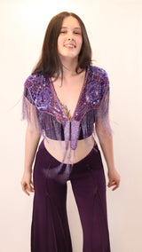 Bring instant magic and movement to any outfit with this dazzling purple sparkle shaker. Designed with intricate beadwork, shimmering sequins, and layered floral motifs, this statement piece adds a dramatic touch of glamour whether you're dancing, performing, or dressing up for a special event.